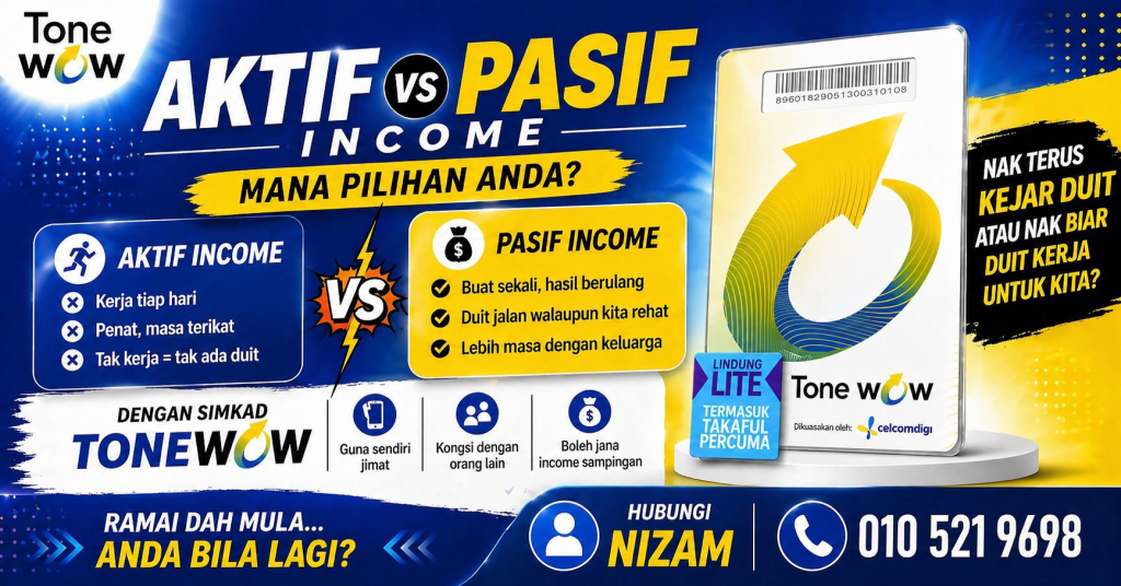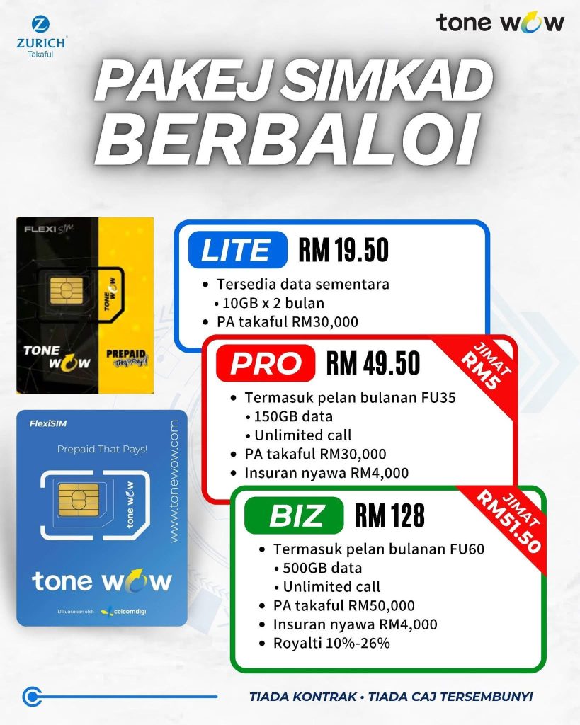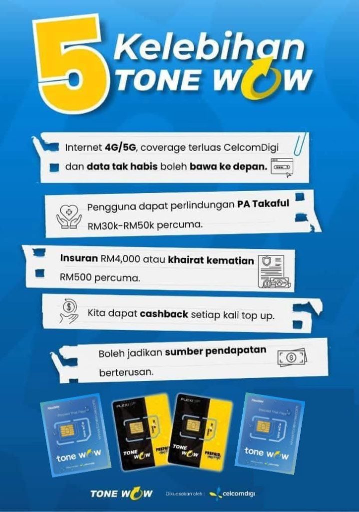 Inilah kehebatan program Tone Wow. Anda bukan sekadar menggunakan simkad dengan liputan 4G/5G yang luas, malah anda sedang membina empayar pendapatan pasif yang: