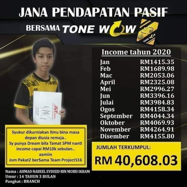 Tone Wow boleh dijadikan sumber pendapatan berterusan.