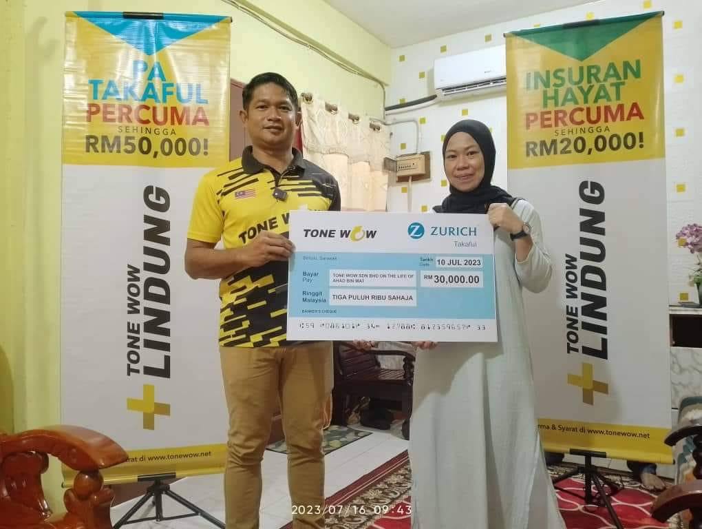 TONE WOW LINDUNG ini diperkasakan lagi dengan Perlindungan Takaful Kemalangan Diri (PA) PERCUMA sehingga RM50,000 dan Perlindungan Takaful Hayat PERCUMA sehingga RM4,000!